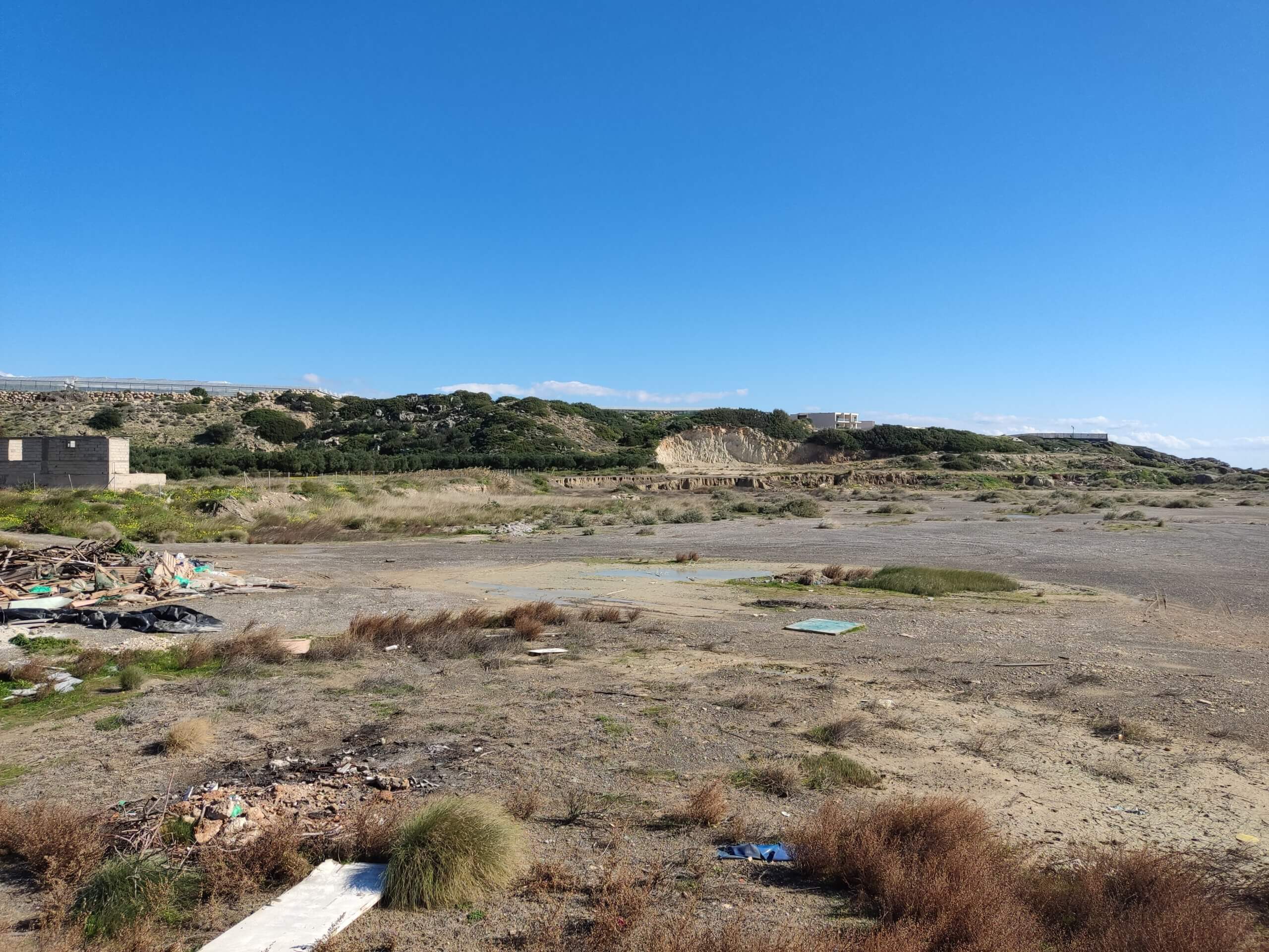 מגרש על שפת הים, ליד בתי מלון.
