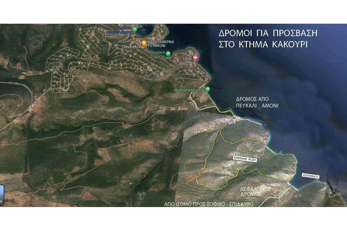 אדמה על הים למכירה באזור Paralia Agia Kiriaki (עד שעתיים מאתונה), יוון.