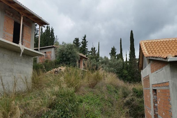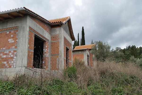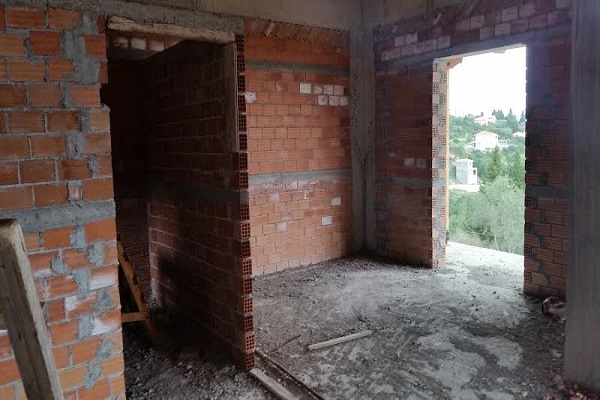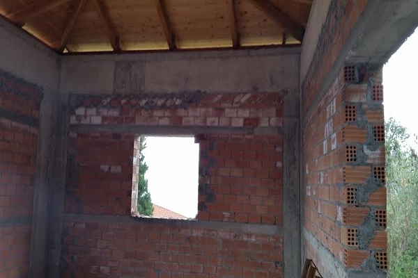 יש שלד, קירות וגג מוכנים, עם תכנון ל-4 בריכות שחייה.