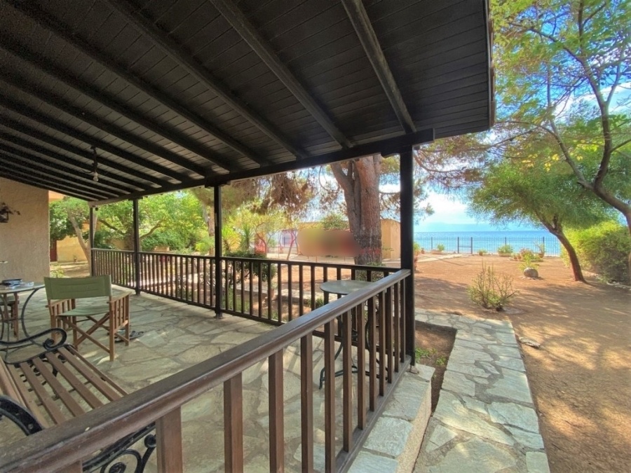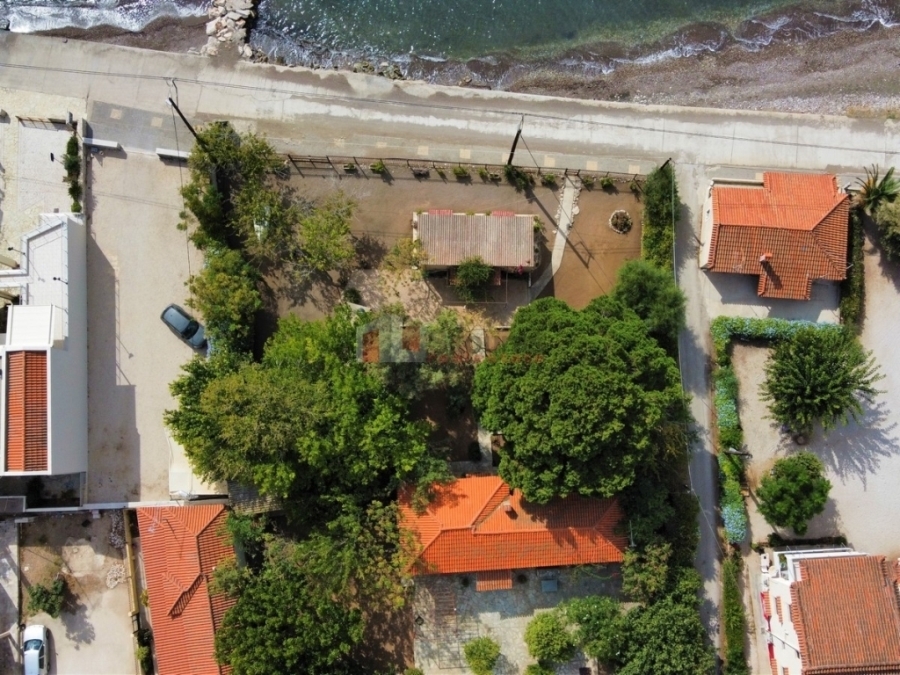 בית ישן ומסורתי בנוי על גינה שופעת עם עצים גדולים גישה לחוף הים.
