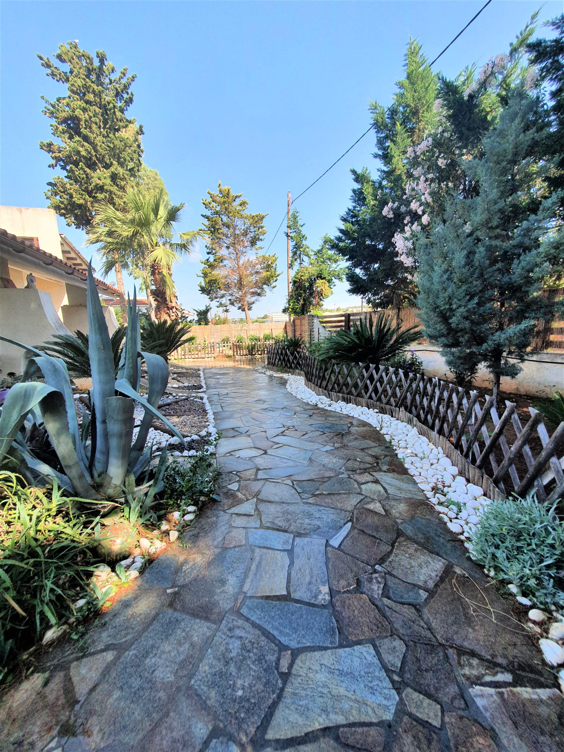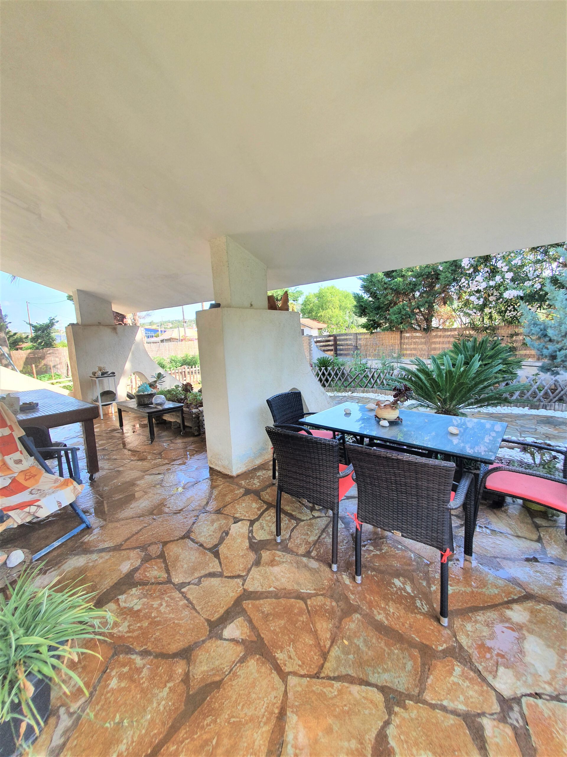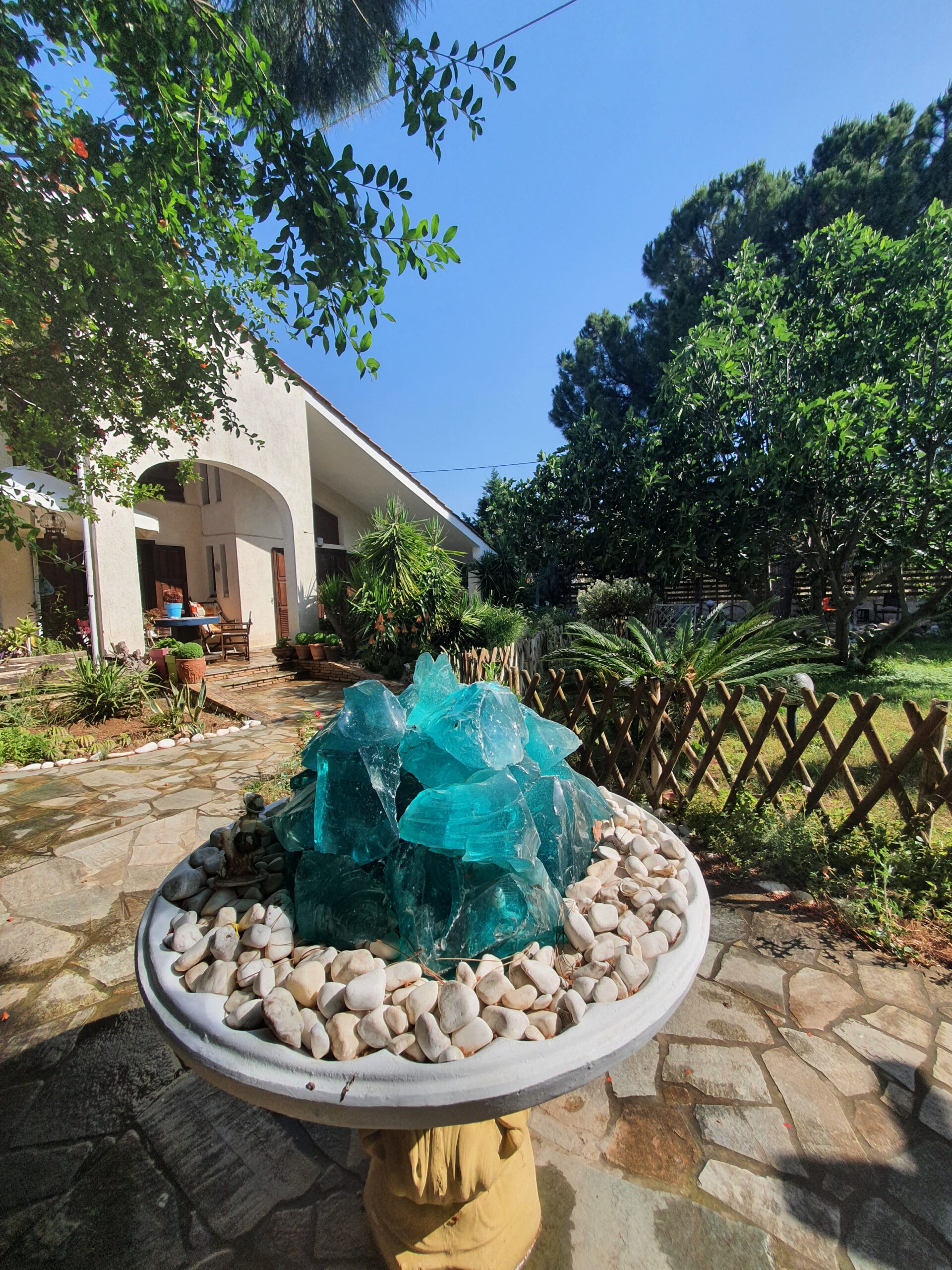 לבית, מרפסות 50 מ"ר עם רצפת אבן קריסטוס. רצפות הבית מכוסות באבן קריסטוס ואריחים. דלתות וחלונות עשויים מעץ אורגון. יש לו גם מערכת חימום אוטונומית.