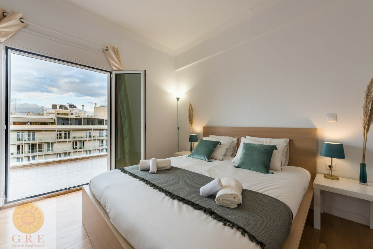 דירת פנטהאוז יוקרתית בקומת הגג (קומה 6), בגודל של 124 מ"ר בנוי, מחודשת לחלוטין, בעיצוב מודרני, מרוהטת, עם 2 חדרי שינה, 3 חדרי רחצה, סלון ומטבח פתוח.