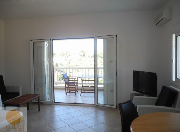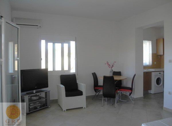 דירה עם שני חדרי שינה, חדר רחצה, בגודל של 65 מ"ר, ממוקמת במיקום שקט עם נוף ללא הפרעה למפרץ וההרים הלבנים מעל כפר שליו.