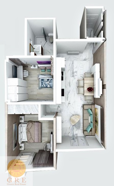עם 2 חדרי שינה, סלון, מטבח וחדר מקלחת, מערכת חימום אוטונומית על גז, מיזוג אוויר.
