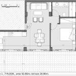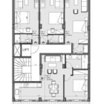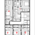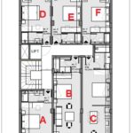 בקומה הראשונה חלל עבודה משותף/משרדים, בקומות 1-4 שש דירות סטודיו(כ 30- מ”ר+מרפסת), בקומות 5-6 שני מיני פנטהאוזים (כ – 45 מ”ר+מרפסת גדולה), ובקומה השביעית פנטהאוז בשטח כל הקומה עם גג עצום.