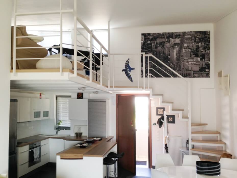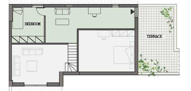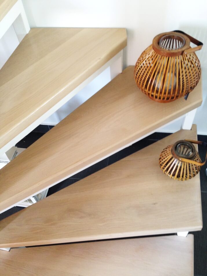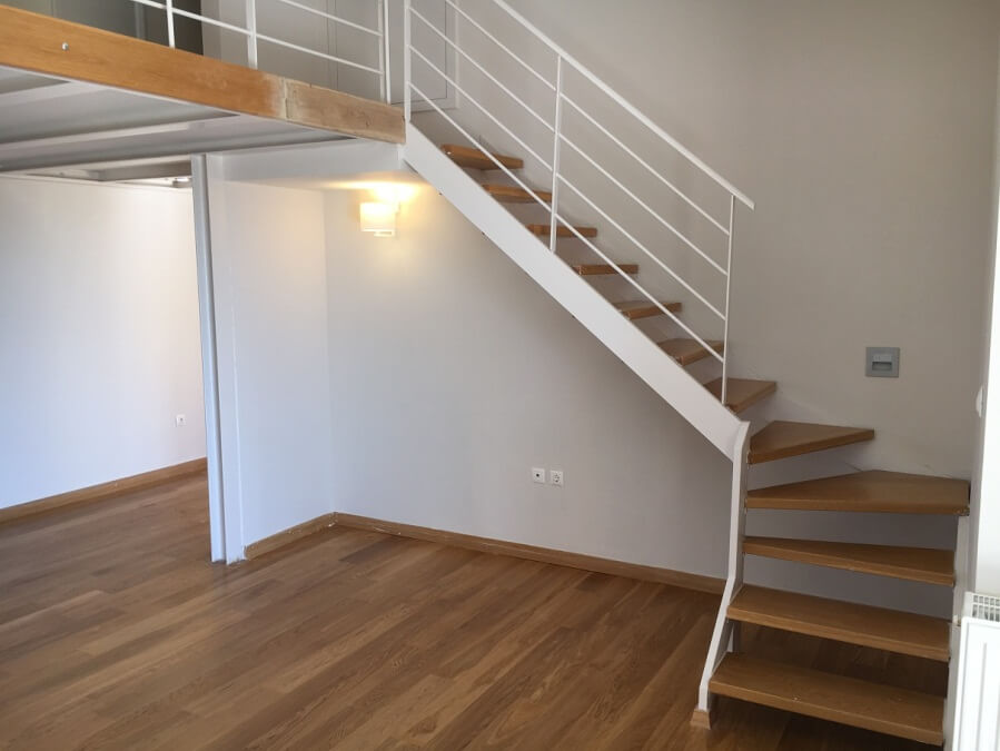 מדרגות עץ למפלס העליון עם חדר שינה משני ו WC.