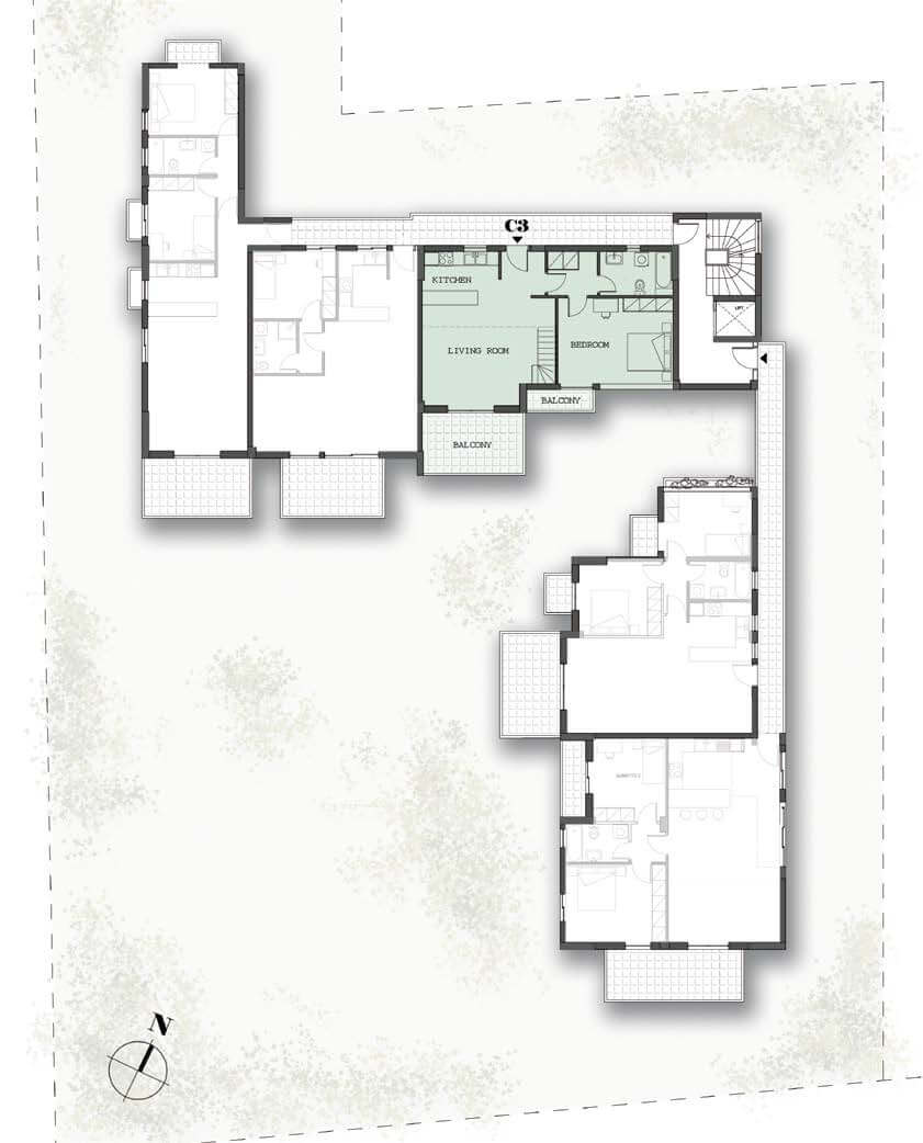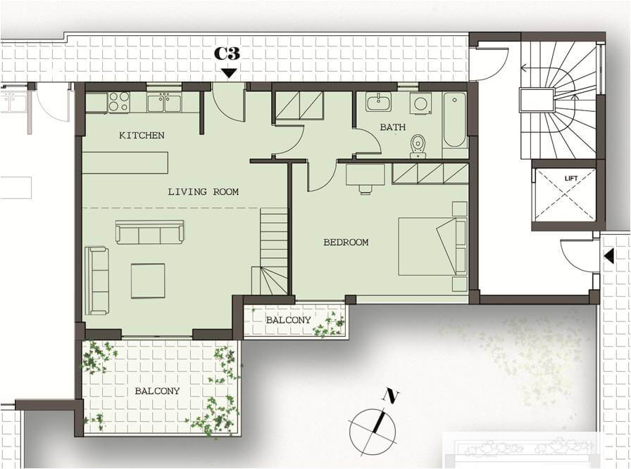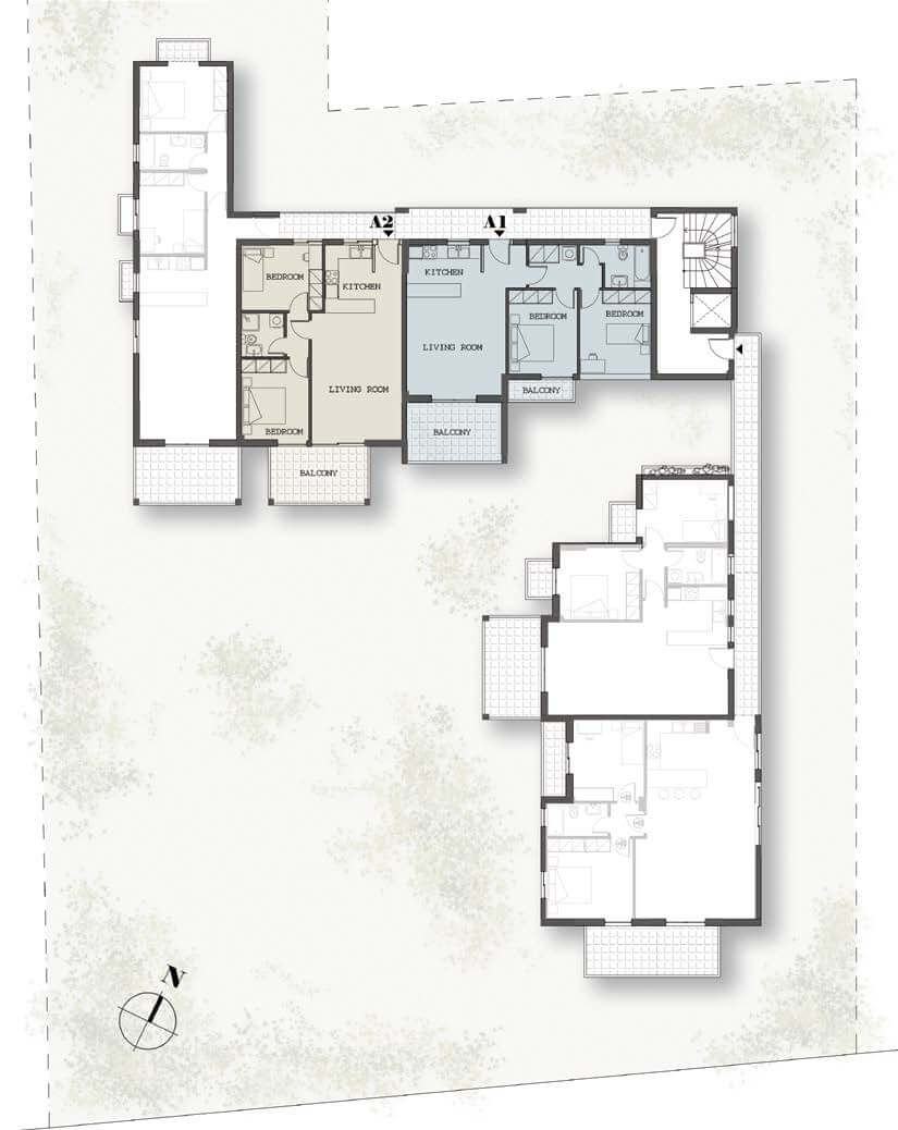 דירת 2 חדרי שינה, דירה בקומה ה -3 , מרפסת ראשית 12 m2 + מרפסת 20m2