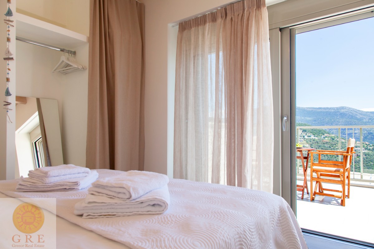 וילה מקסימה שנותנת "הרגשה של בית" אשר נבנתה עם המון אהבה ומחשבה לפרטים הקטנים – בנויה מאבן מקומית בשילוב עם עץ וגודלה כ 120 מ"ר. ממוקמת גבוה על צלע ההר מעל אחד המפרצונים הקסומים באי לפקדה. ההגעה אומנם כרוכה בנסיעה תלולה אך כאשר מגיעים והנוף של הים היוני והאיים השכנים נפרש מולנו במלוא עוצמתו ויופיו – מבינים שהיה שווה ! המיקום המיוחד של הוילה מקנה לה פרטיות ועם זאת קירבה לכפר הצבעוני המעוטר בטיילת קטנה למרגלות ההר, בו תהנו משלל טברנות קסומות וחנויות מעניינות, סופרמרקט, שלל מפרשיות וסירות דייגים מקומיים.