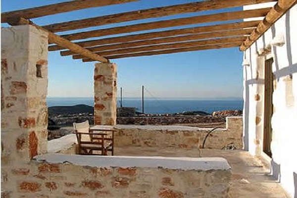 וילה מקסימה הבנויה בסגנון מסורתי מאבן שיש לבנה שנחצבה במקום, עם נוף פנורמי לים.