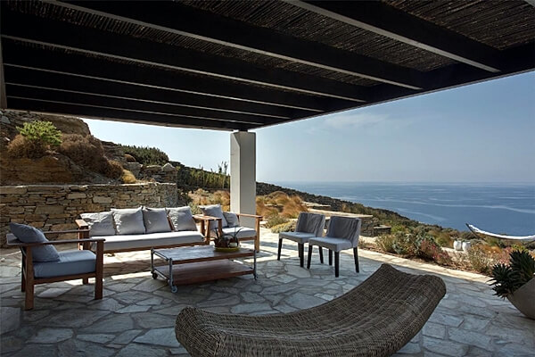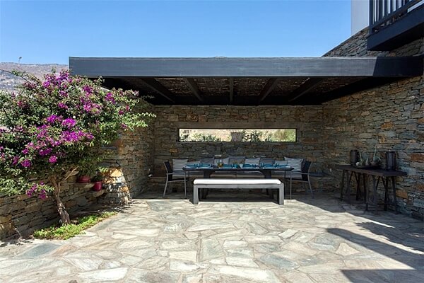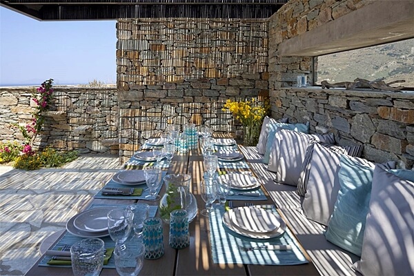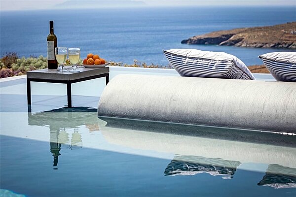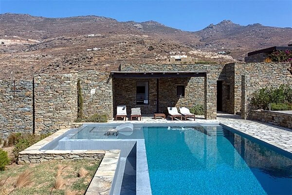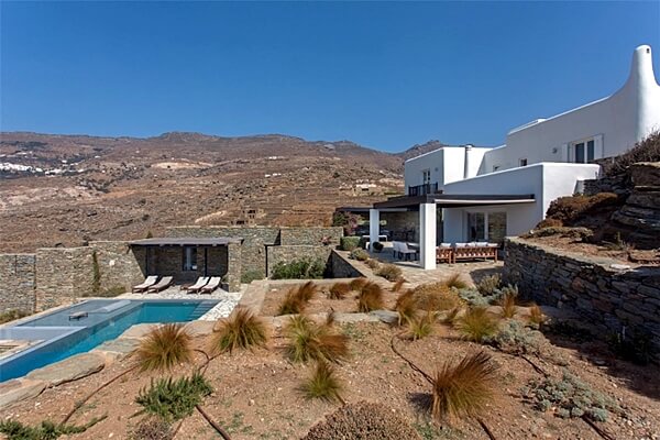 הנכס תוכנן ונבנה על ידי אחד הצוותים האדריכליים המובילים ביוון ועומד על ראש גבעה ונהנה מנופים פנורמיים של הים האגאי כמו גם נוף שך כמה מהאיים הקיקלדיים. האי טינוס (Tinos) ידוע ביופי הטבעי שלו, כפרים מעוטרים שיש, מפרצים מוסתרים, יונים, גבעות מדורגות והרים ערפיליים. אתה לעולם לא תרגיש חוסר התרגשות במקום הזה, האזור אידיאלי לטיולים רגליים המובילים לכפרים הרריים, טחנות רוח ישנות, מנזרים נטושים וחופים מבודדים רבים. בחלקו האחורי של השטח שוכן כפר מסורתי שוקק חיים יווניים אותנטיים.