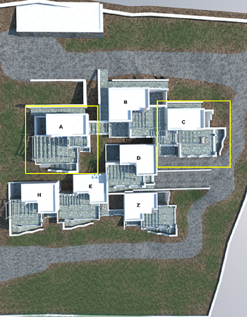 שתי וילות מסורתיות מאבן, כל אחת מורכבת מ-3 קומות בשטח כולל של 145 ו-140 מ"ר.