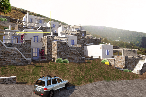 חמש וילות מסורתיות אוטונומיות מאבן, כל אחת מורכבת מ-2 קומות בשטח של 100 מ"ר, עם מרפסות גדולות מאוד, נוף פנורמני של חוף פונטה, אנטיפארוס והים האגאי הכחול.
