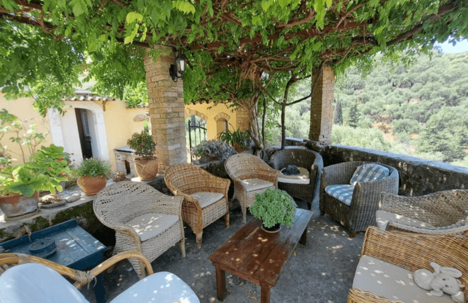 שוכנת בשטח פרטי עם נופים מדהימים המשתרעים על פני מטעי זיתים לאלבניה ומעבר.