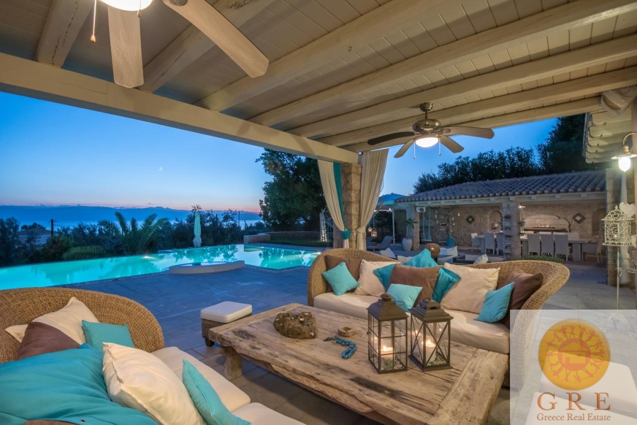 וילה מודרנית שילוב של מבנה אבן עם אלמנטים מודרניים,  משקיפה לים , עם נופים מדהימים על פני האי עד לעיר קורפו.