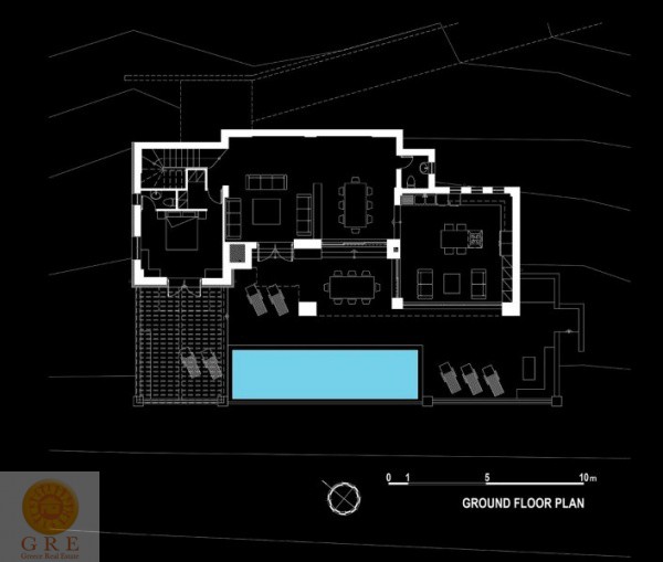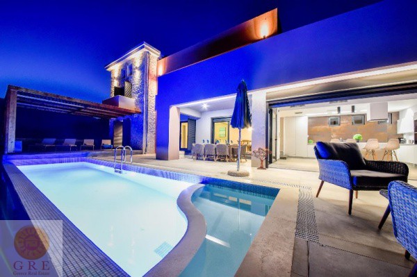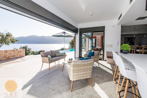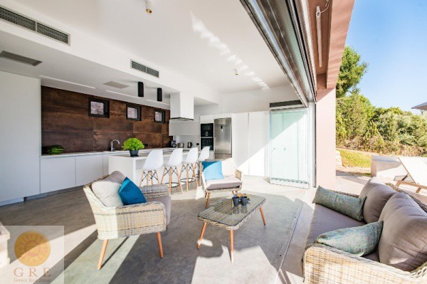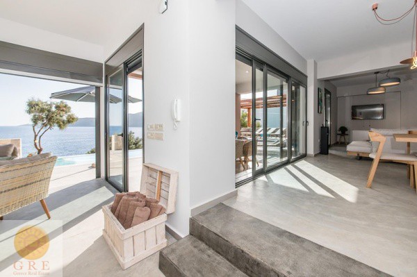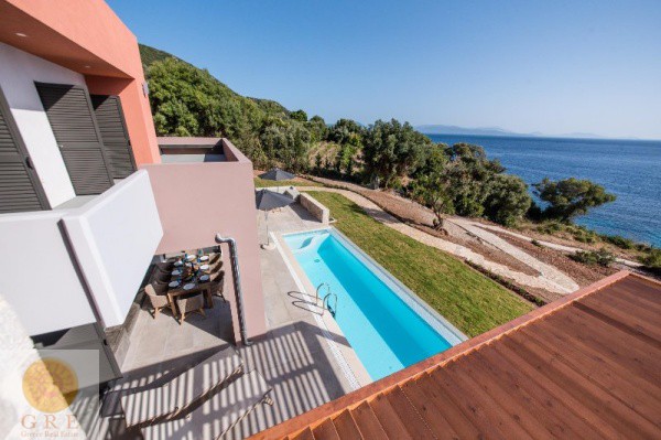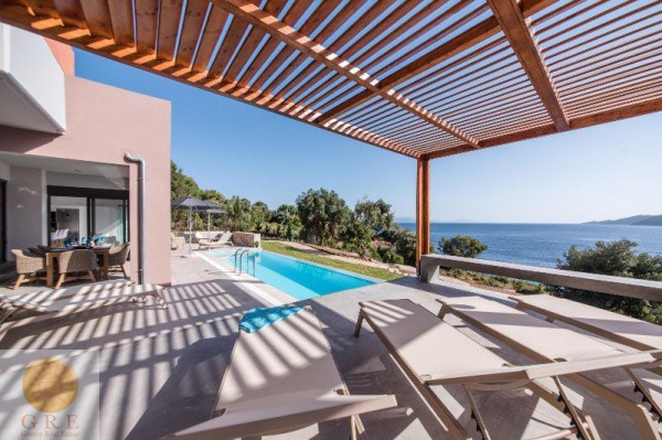 הוילה צמודה לים, עם בריכה וחנייה פרטית.
