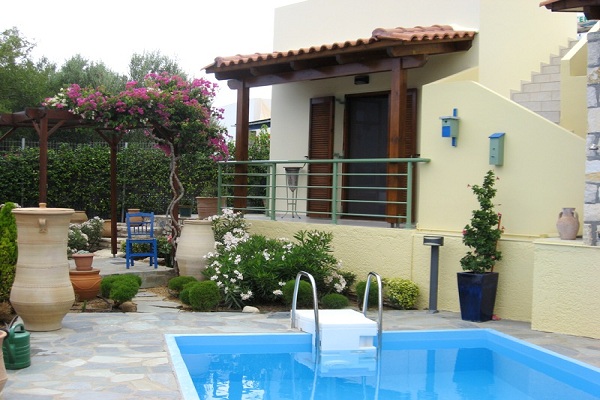 לוילה 2 חדרי שינה, 1 חדר רחצה עם שירותים ובריכה.