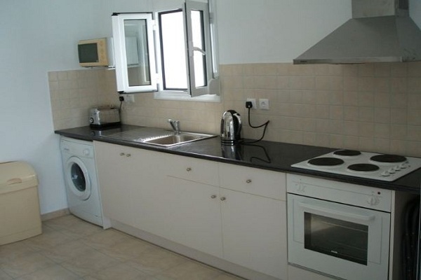 המטבח כולל תנור מובנה, מכונת כביסה, מדיח כלים, מקרר ומיקרוגל.