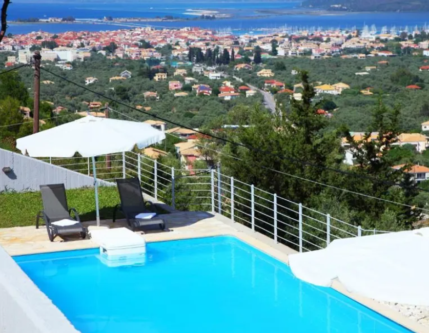 חניה, חצר גדולה עטופה בטבע ירוק, בריכה המשקיפה אל נוף ים מרהיב