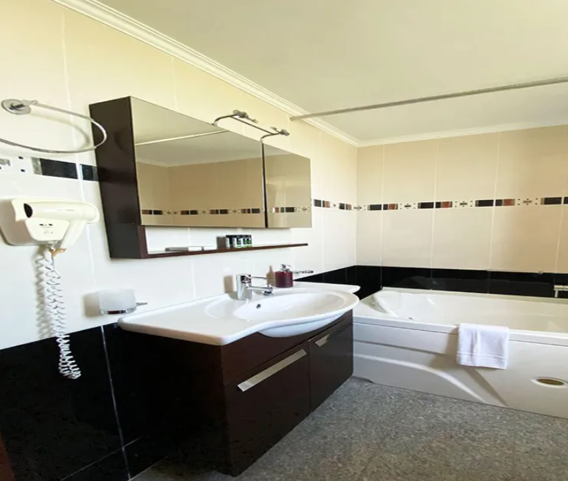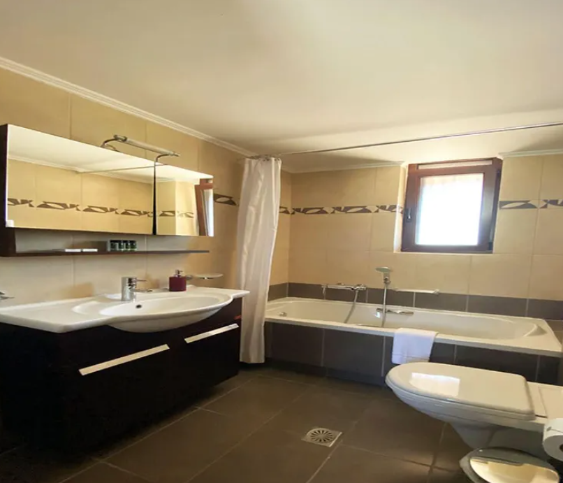 קמין, רצפת אריחי קרמיקה, חצר גדולה ובה 2 בריכות גדולות ומפנקות,