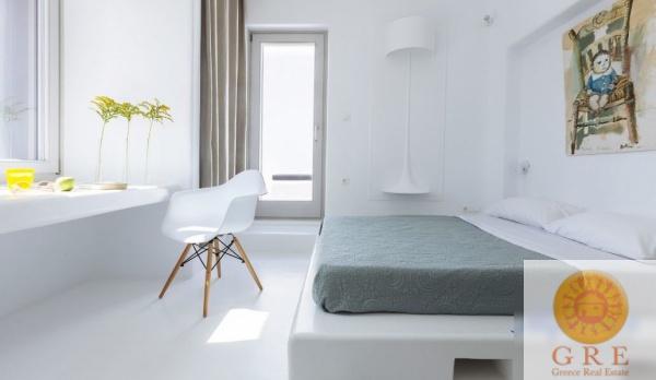 מיזוג של האדריכלות הקיקלדית המינימלית עם נגיעות של עיצוב מודרני וסגנון איטלקי, כל החדרים מעוררים תחושה ביתית שלווה של וילה מפוארת במיקונוס.