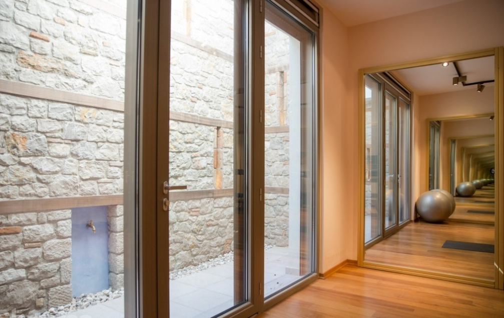 אזורי חדר הכושר, החדר הרטוב והבר החיצוני מחוברים כולם למערכת סטריאו.