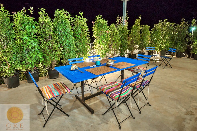 בחוץ חלל עם סלון גדול, מנגל וחניה.