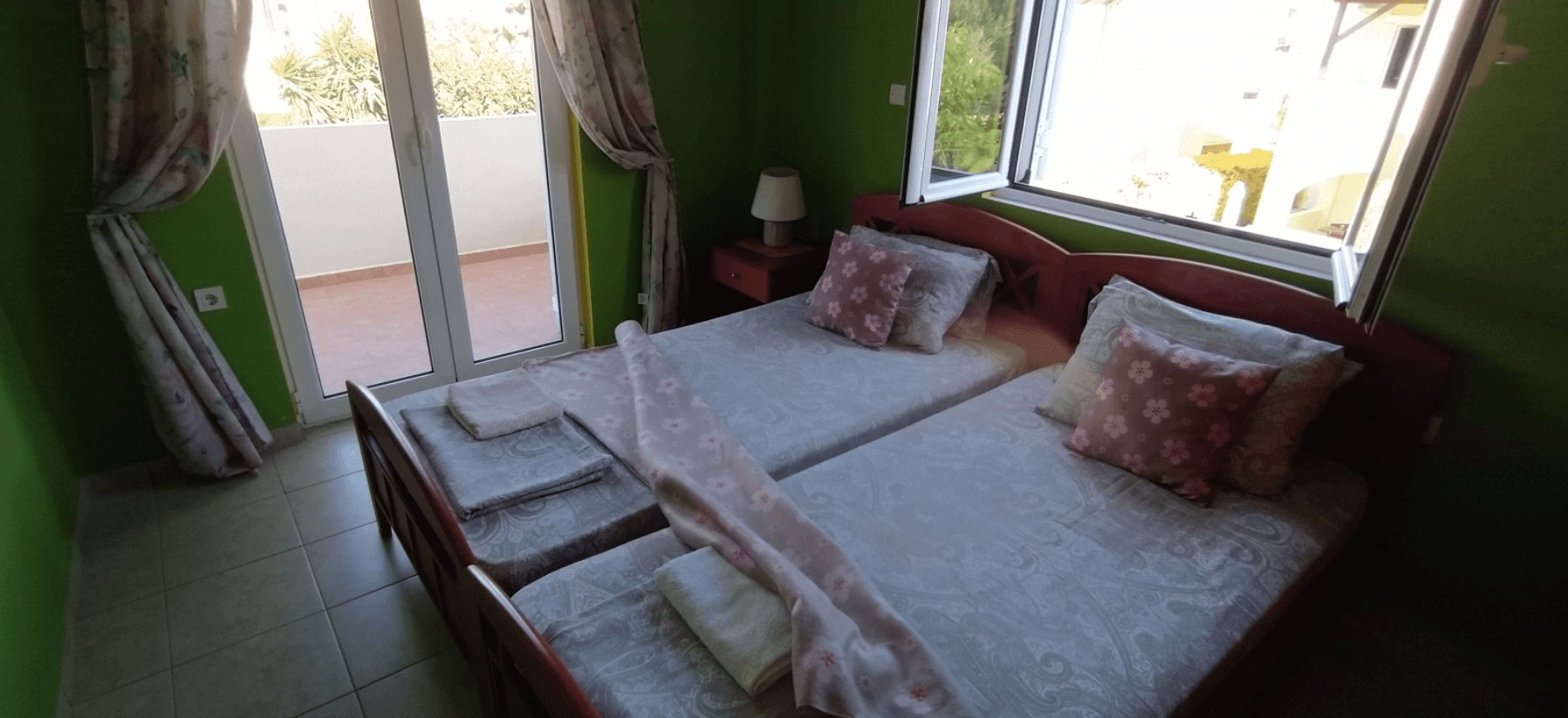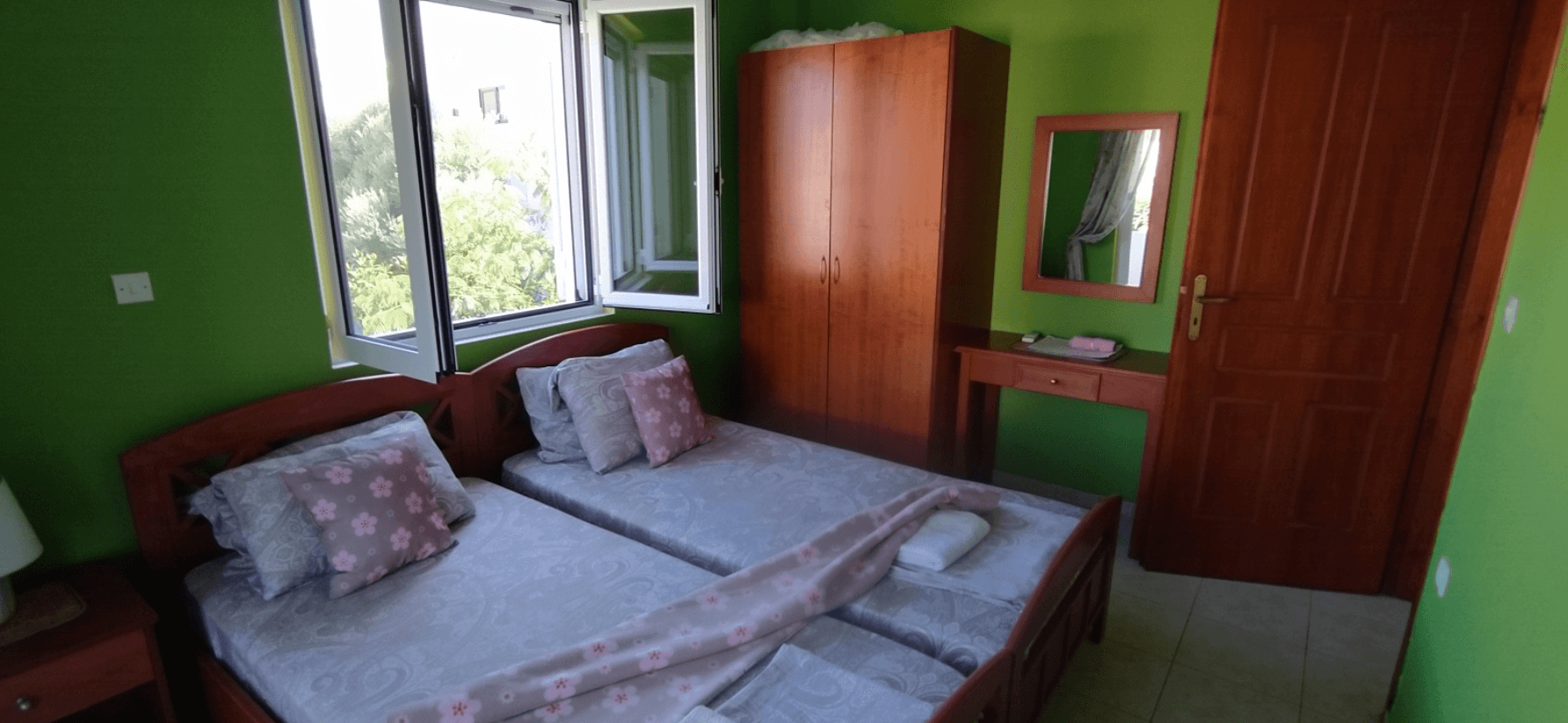 3 חדרי שינה מרווחים, 2 מהם חולקים מרפסת גדולה עם נוף הררי וכפרי וחדר רחצה עם אמבטיה.