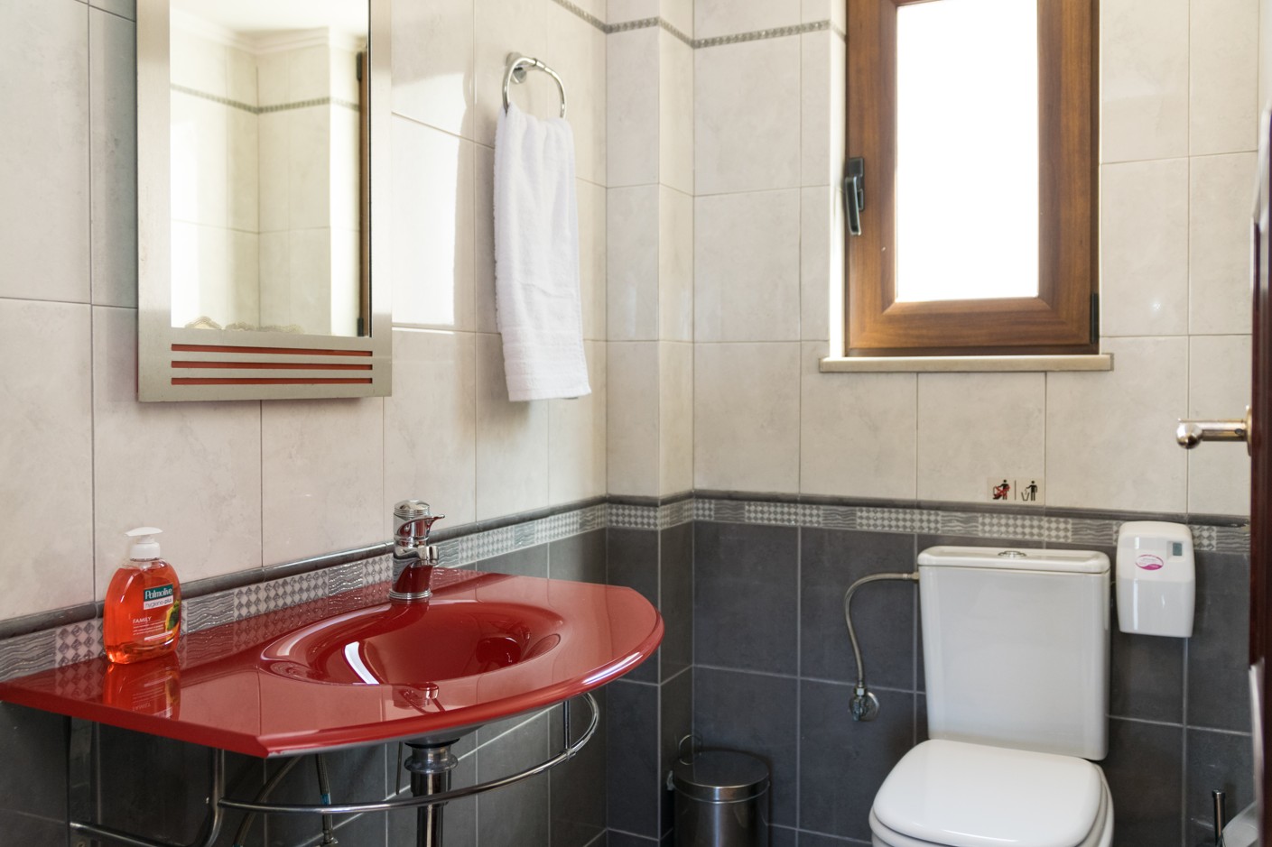 באותו מפלס יש גם שירותים, כמו גם המדרגות הפנימיות המרשימות שמובילות אותנו לקומה הראשונה.