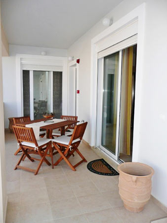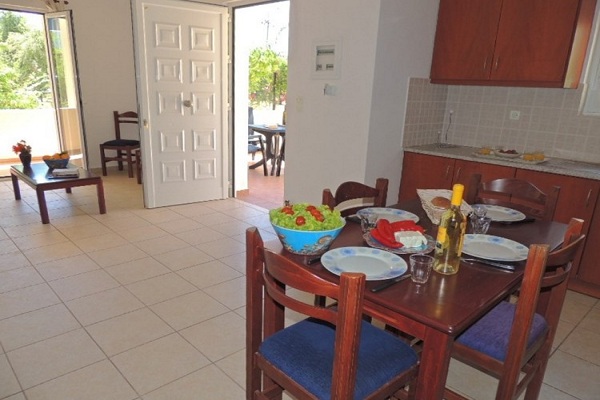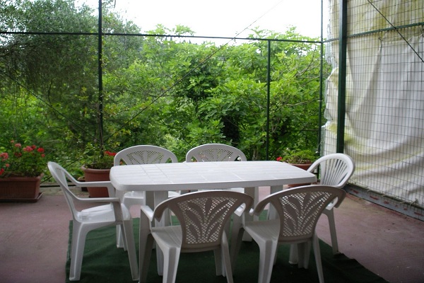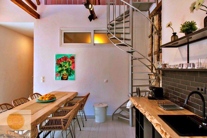 דרך קשת גדולה בנויה מאבן אנו מגיעים לחדר האוכל ולמטבח המאובזר במלואו, שיש לו גישה למרפסת הגדולה.