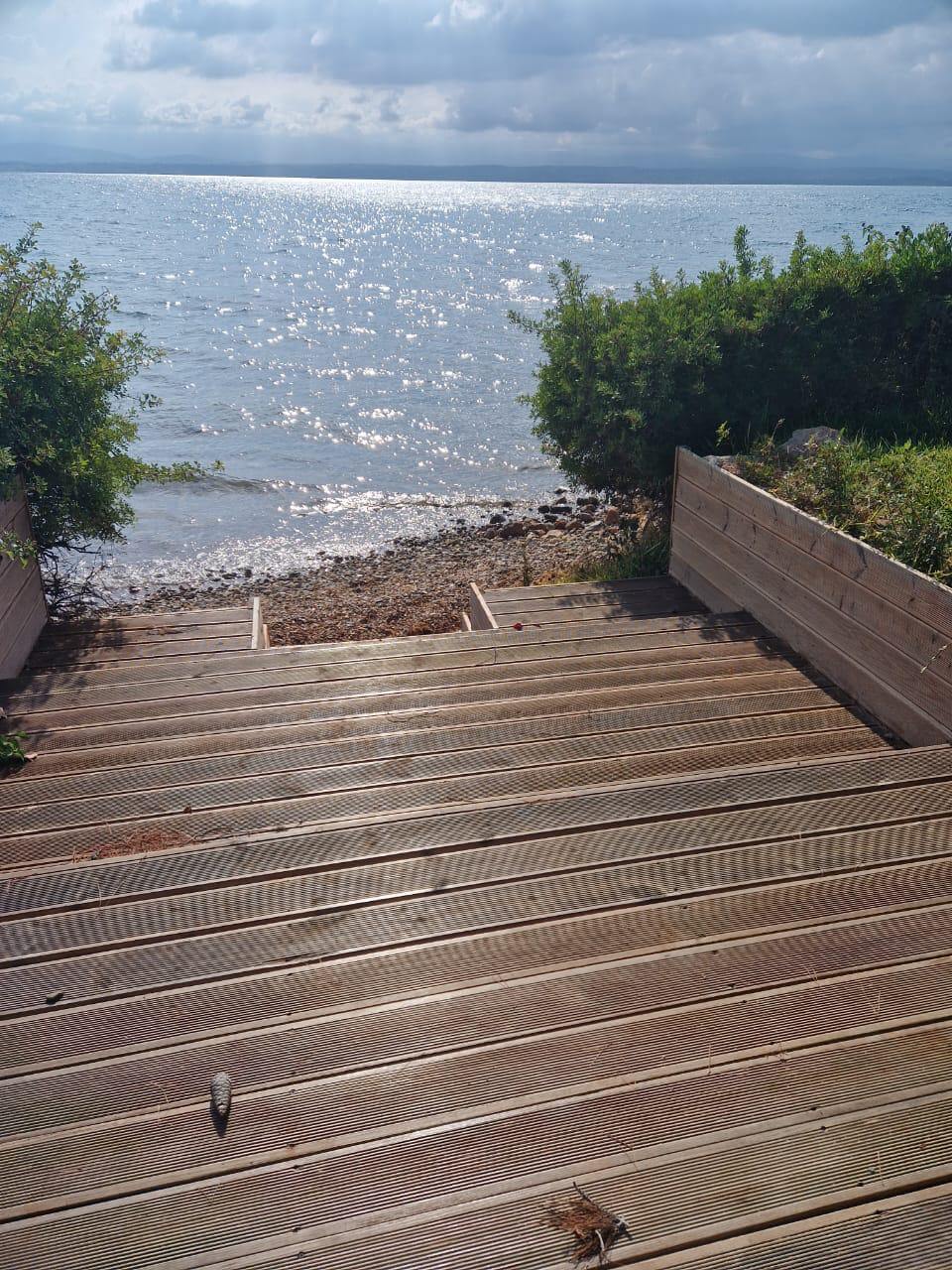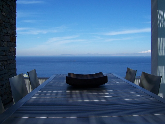 בעקבות מדרגות העץ לקומה הראשונה נגיע לפינת עבודה מקסימה המשקיפה על אזור הבריכה ועם גישה למרפסת הגדולה עם נוף פנורמי של ההרים.