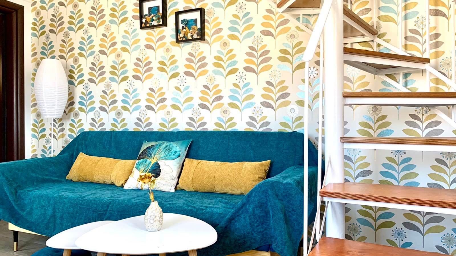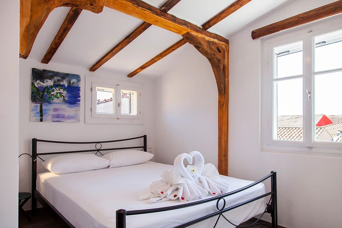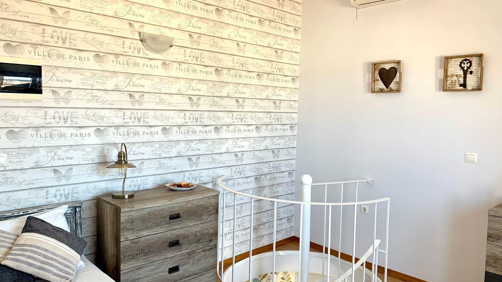 המדרגות מובילות למפלס השלישי, עליית הגג, שהוסבה לחדר שינה גדול עם שתי מיטות יחיד.