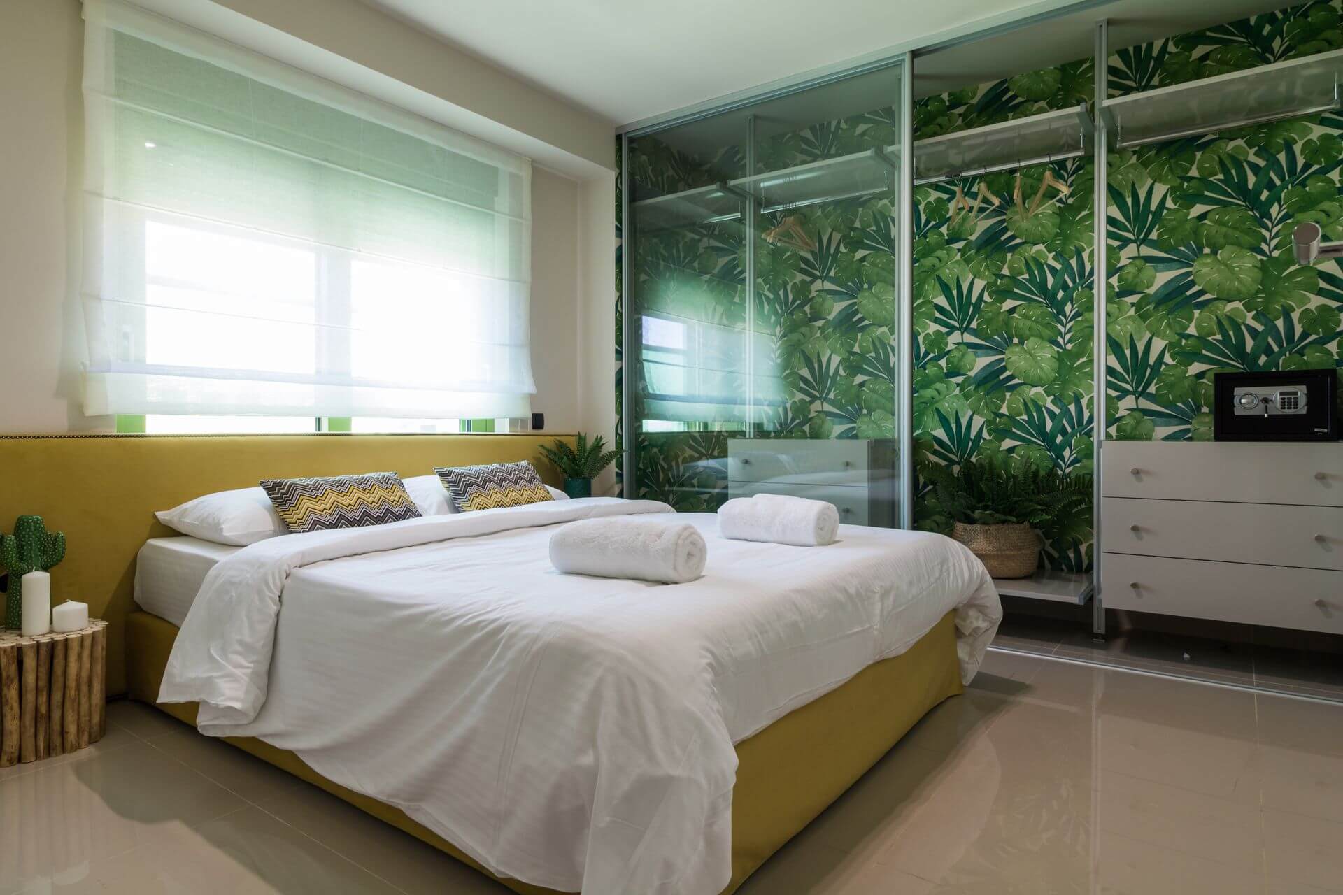 יש גם חדר רחצה עם מקלחת, חדר שינה עם מיטה זוגית וארון בגדים, הכולל מרפסת קטנה המשקיפה על אזור הבריכה ומרפסת מרווחת משלה המשקיפה על המרחבים הירוקים העצומים.