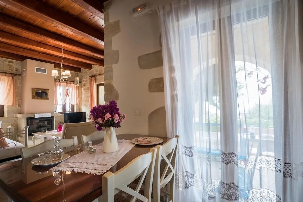 עץ ואבן הם המאפיינים הדומיננטיים התואמים באופן מושלם את הנוף המרשים של מטעי זיתים המקיפים את הווילה.