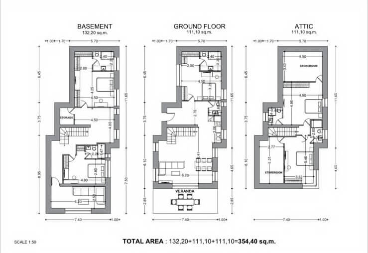 מכיוון ששלושת הבתים הישנים נמצאים באותו מצב שבו הייתה הווילה לפני השיפוץ, לאחר ששוחזרו, הם יהוו מתחם משפחתי קטן פרטי.