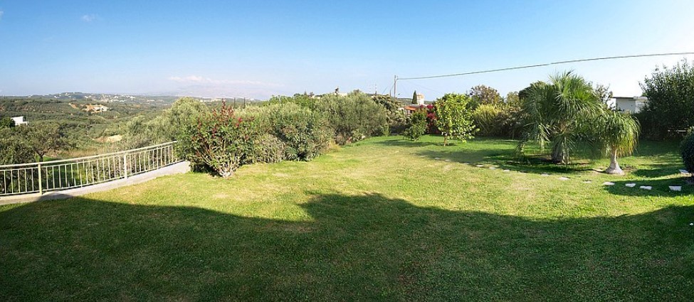 הנכס שוכן בגינה בוגרת ומדשאה מטופחת, יחד עם אזור לגידול ירקות. הכניסה היא באמצעות שערי פלדה אלקטרוניים, בהם יש חניה ל-3-4 מכוניות.