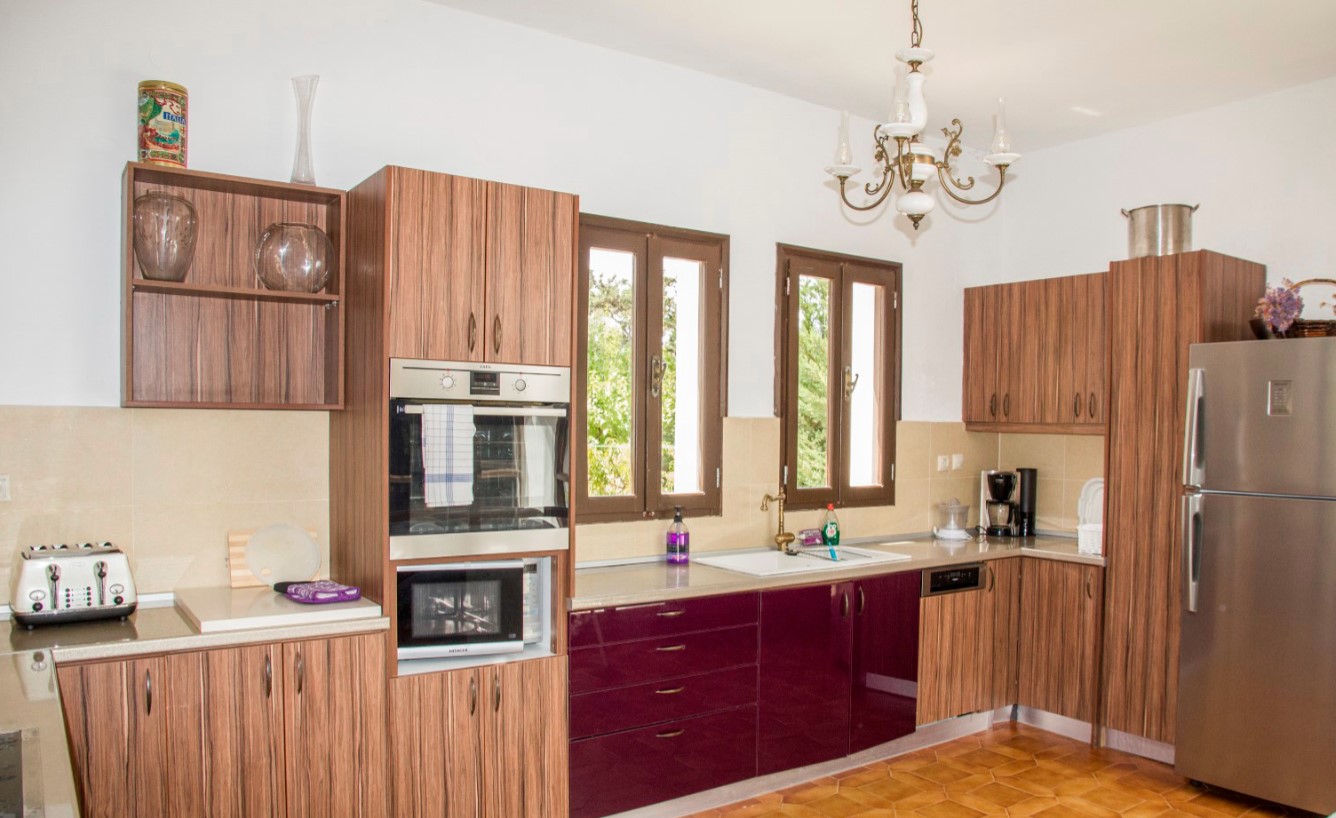 המטבח המרווח המאובזר היטב הוא חדר נפרד דרך דלתות זכוכית. הוא מגיע מאובזר במלואו עם מכשירי חשמל מנירוסטה, שפע של ארונות לאחסון והוא כולל מדיח כלים. לצד המטבח ישנו גם חדר שירות נפרד בו נמצאים מכונת הכביסה ומייבש הכביסה.