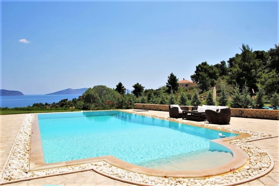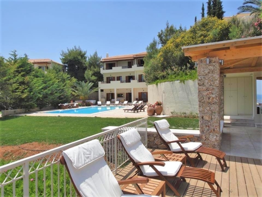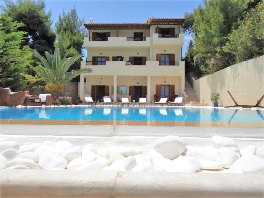 במרחק של 400 מטר מהחופים של קונופי, קרנידי, מוצעת למכירה וילה עצמאית בת שלושה מפלסים בשטח כולל של 280 מ"ר בתוך מגרש פרטי של 1,800 מ"ר.