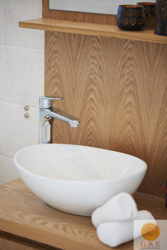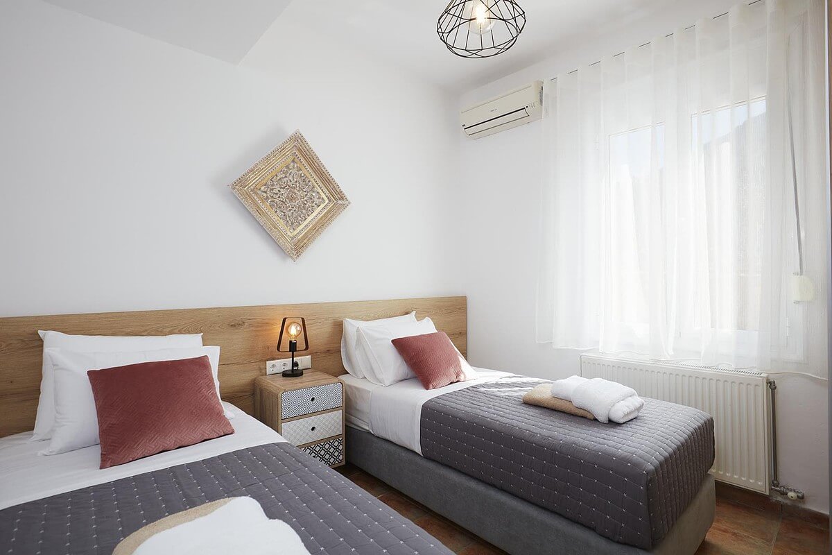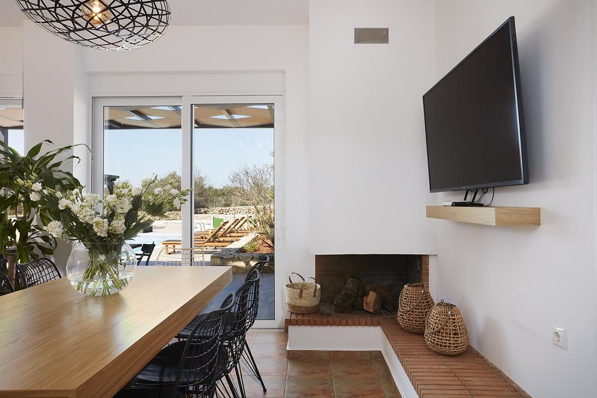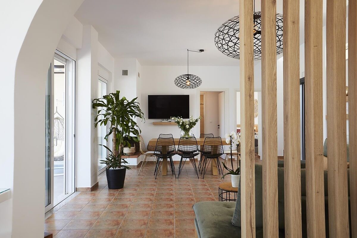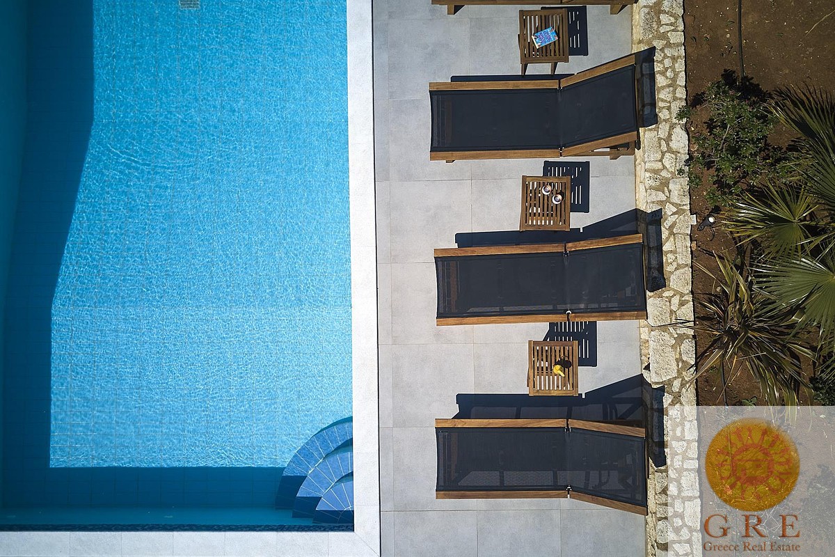 בקומת הקרקע של הוילה, ניתן למצוא אזור אוכל ומגורים מעוצב להפליא,הכולל אח עצים. באותו מפלס, יש גם מטבח מאובזר, 2 חדרי שינה וחדר רחצה. דלתות הזזה גדולות מזכוכית מובילות למרפסת החיצונית, שם תמצאו את פינת האוכל החיצונית וגישה לכל האזורים החיצוניים של הוילה. הקומה הראשונה של וילה זו מורכבת מ-2 חדרי שינה זוגיים. לשניהם יש גישה למרפסות, אחת מהן מקורה בפרגולה ומשקיפה על ההרים הלבנים והים. בנוסף, יש חדר רחצה עם אמבטיה ויחידת מקלחת מותקנת.