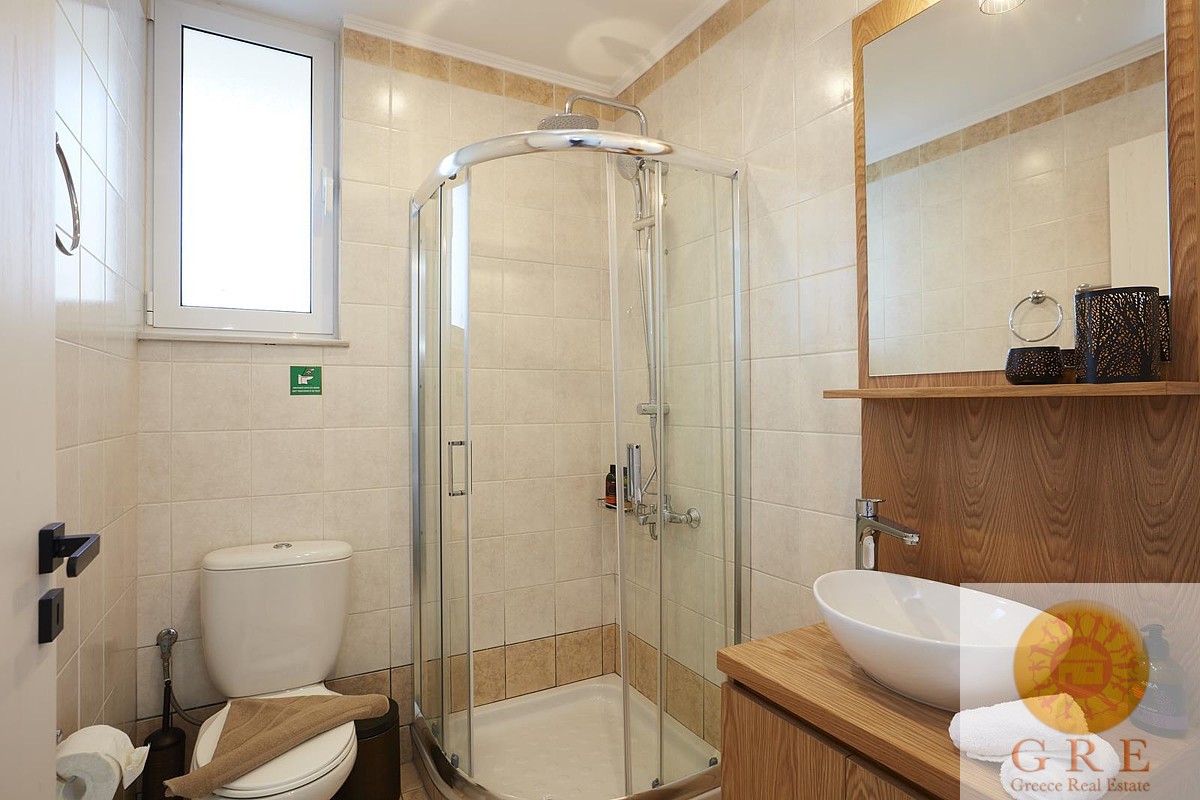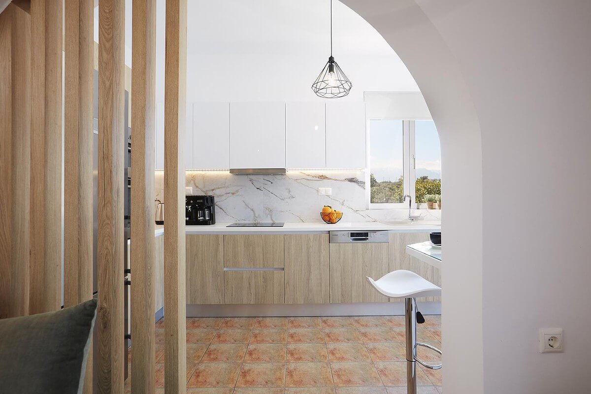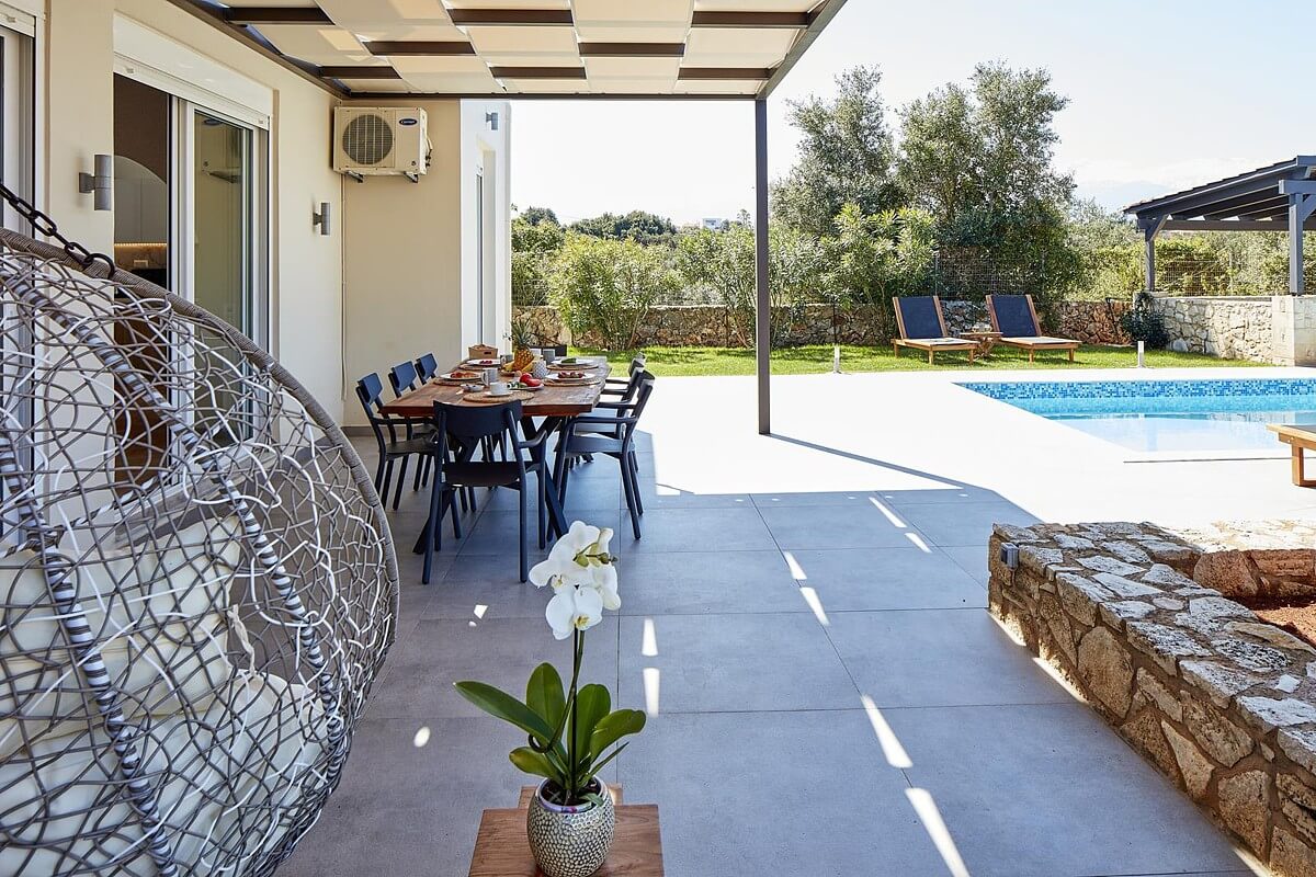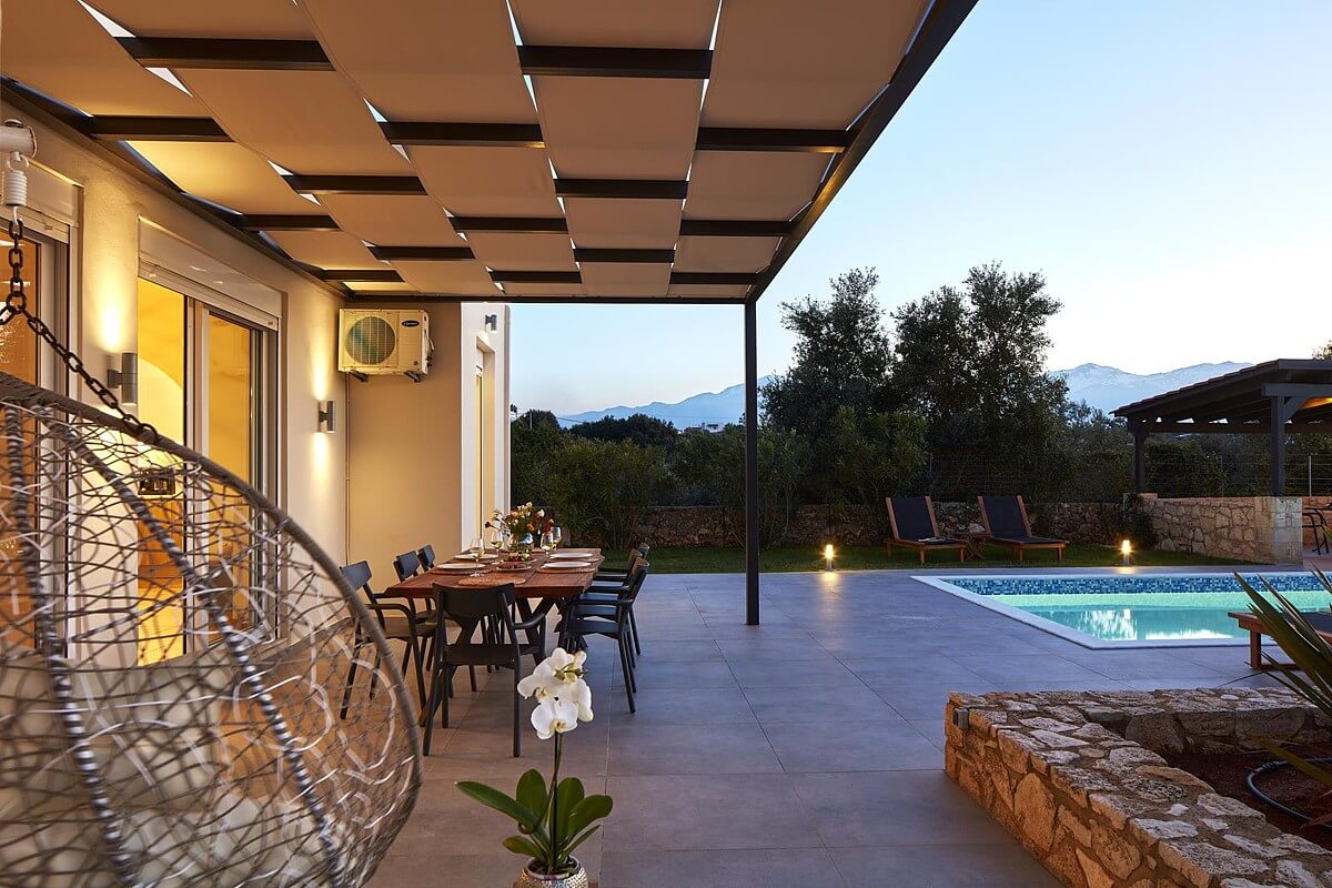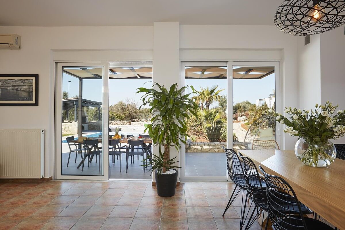 בקומת הקרקע של הוילה, ניתן למצוא אזור אוכל ומגורים מעוצב להפליא,הכולל אח עצים. באותו מפלס, יש גם מטבח מאובזר, 2 חדרי שינה וחדר רחצה. דלתות הזזה גדולות מזכוכית מובילות למרפסת החיצונית, שם תמצאו את פינת האוכל החיצונית וגישה לכל האזורים החיצוניים של הוילה. הקומה הראשונה של וילה זו מורכבת מ-2 חדרי שינה זוגיים. לשניהם יש גישה למרפסות, אחת מהן מקורה בפרגולה ומשקיפה על ההרים הלבנים והים. בנוסף, יש חדר רחצה עם אמבטיה ויחידת מקלחת מותקנת.