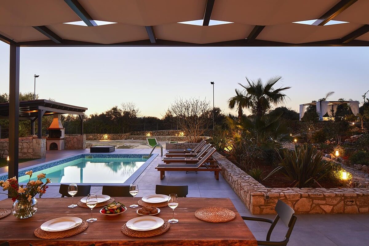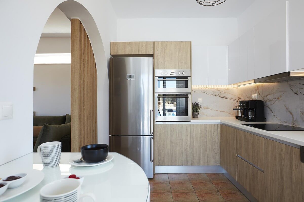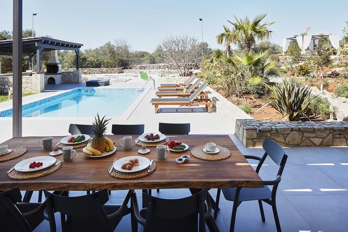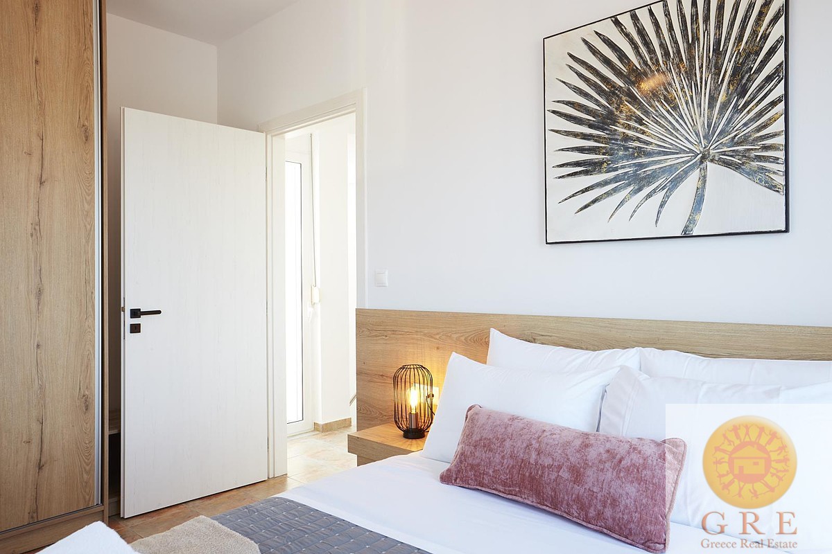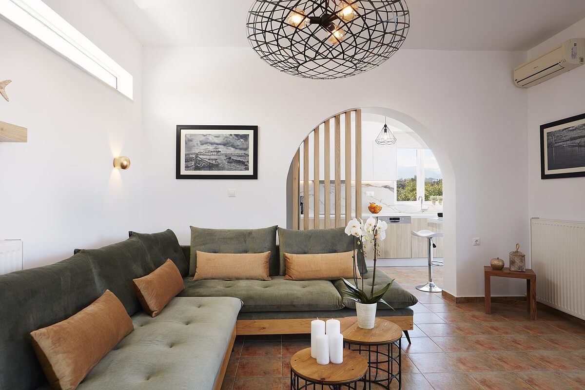 בקומת הקרקע של הוילה, ניתן למצוא אזור אוכל ומגורים מעוצב להפליא,הכולל אח עצים. באותו מפלס, יש גם מטבח מאובזר, 2 חדרי שינה וחדר רחצה. דלתות הזזה גדולות מזכוכית מובילות למרפסת החיצונית, שם תמצאו את פינת האוכל החיצונית וגישה לכל האזורים החיצוניים של הוילה. הקומה הראשונה של וילה זו מורכבת מ-2 חדרי שינה זוגיים. לשניהם יש גישה למרפסות, אחת מהן מקורה בפרגולה ומשקיפה על ההרים הלבנים והים. בנוסף, יש חדר רחצה עם אמבטיה ויחידת מקלחת מותקנת.