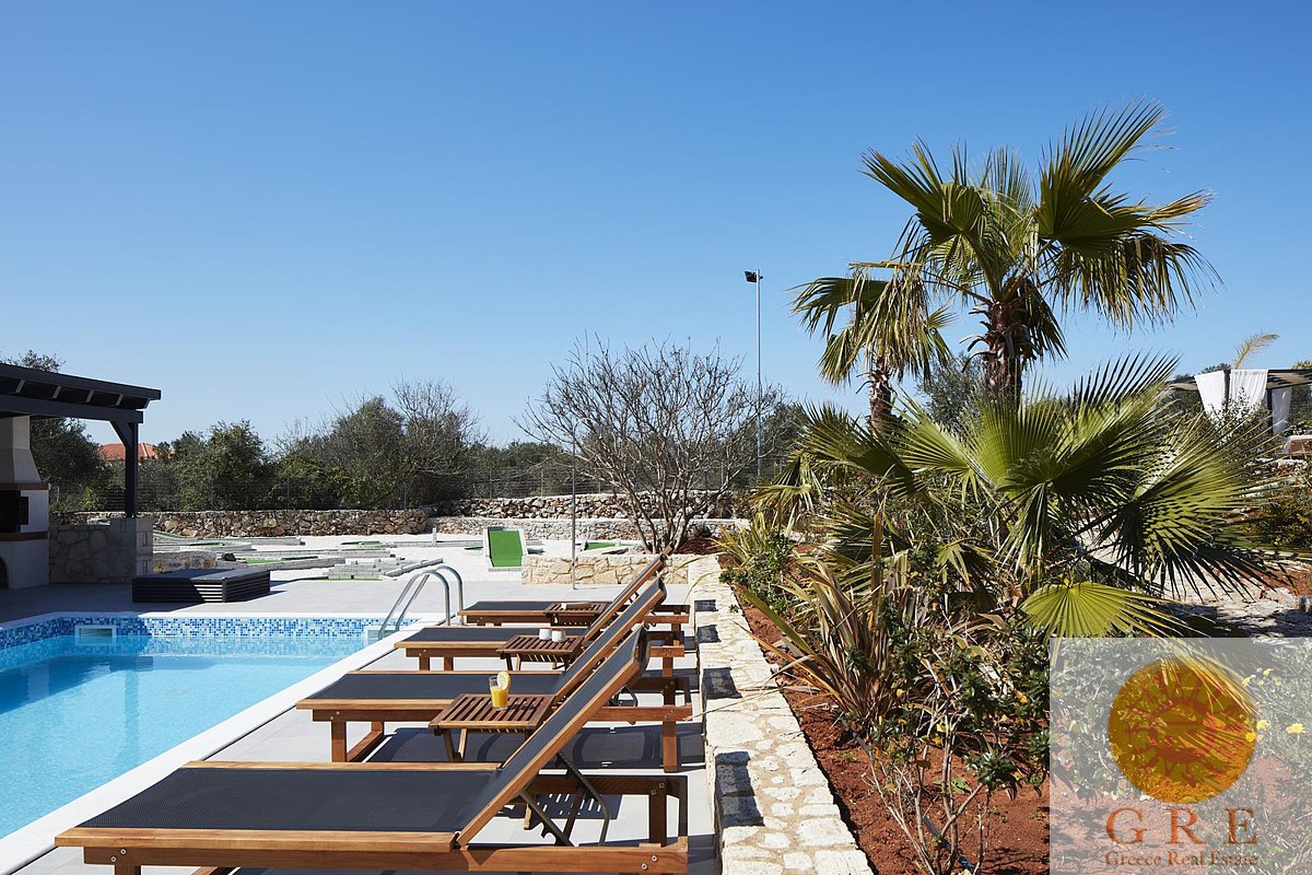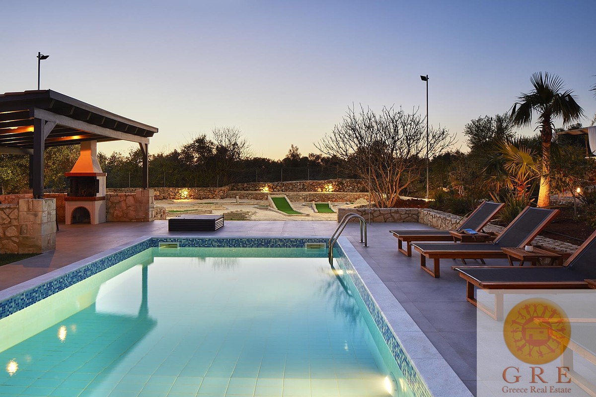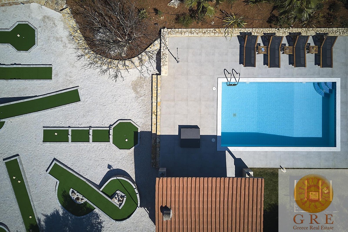 הוילה מגודרת ויש לה חניה פרטית מרווחת משלה. אזור הבריכה מוקף בגן מעוצב ותוסס. גודל הבריכה הוא 28 מ"ר ויש לה אזור מרפסת שיזוף עם אריחים. לצד הבריכה, יש את המיני גולף המעוצב בקפידה, עם רמות קושי שונות ושמונה מסלולים שונים,. בעודכם בדרככם בשביל הגן, תמצאו את הפינה הטרופית המרגיעה בה ממוקם הג'קוזי, הנותנת רושם של ספא ביתי פרטי.