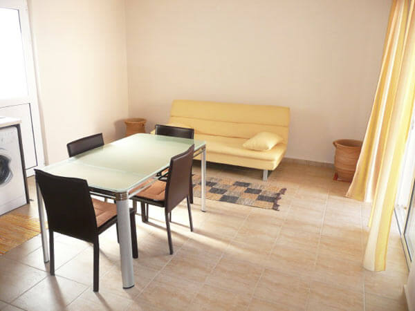 אזור הסלון מואר באופן כללי עם אור טבעי בשל נוכחות החלונות במטבח, כמו גם הדלתות הצרפתיות המעניקות גם גישה ישירה למרפסת החיצונית. אזור הטרקלין כולל 2 ספות גדולות ,טלוויזיה ושולחן אוכל נחמד עם גימור עץ .