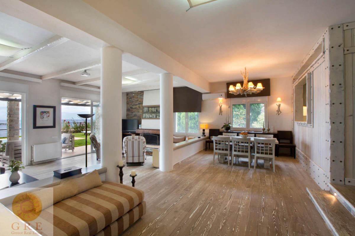 במפלס הבריכה יש את המטבח, חדר האוכל, השירותים וסלון עם אח מקסימה המשקיפה על הבריכה והים.