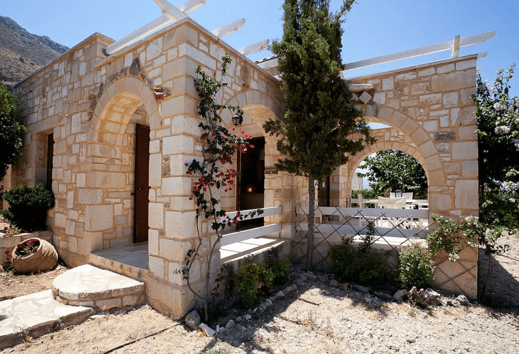 This 2-bedroom stone villa for sale in Chania Crete is arranged over 1 level with 75sqms of living space and a private plot of land of 560sqms. It includes a living room with an open plan kitchen, 2 bedrooms and a bathroom. It is surrounded by beautiful terraces overlooking the sea and the mountains.