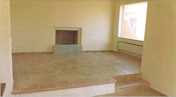 בקומת הקרקע יש מטבח פתוח ואזור מגורים עם אח, חדר שינה וחדר רחצה.