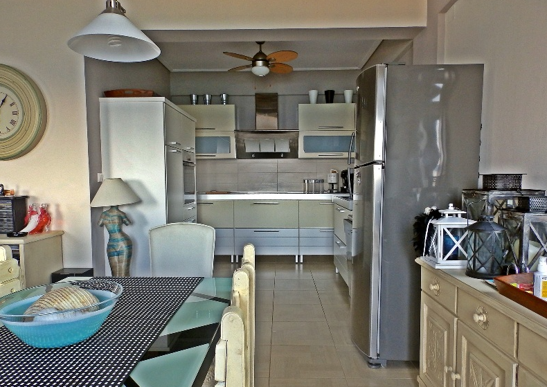 מהקומה האמצעית יש לנו גם גרם מדרגות פנימי למפלס התחתון. קומה זו כוללת דירת סטודיו עם מטבח וחדר רחצה. גם ממפלס זה תוכלו ליהנות מהנוף הפתוח של הים האגאי מהמרפסת המרווחת.