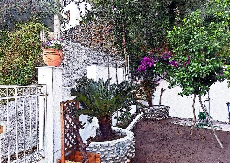 מסביב לבית, בקומה האמצעית, הוקמה מיני גינה מעוצבת להפליא עם עצי פרי ופרחים שונים. יש גם פינת ברביקיו.
