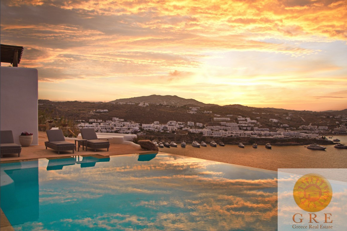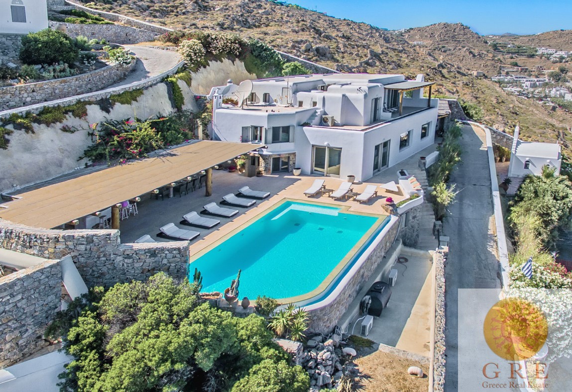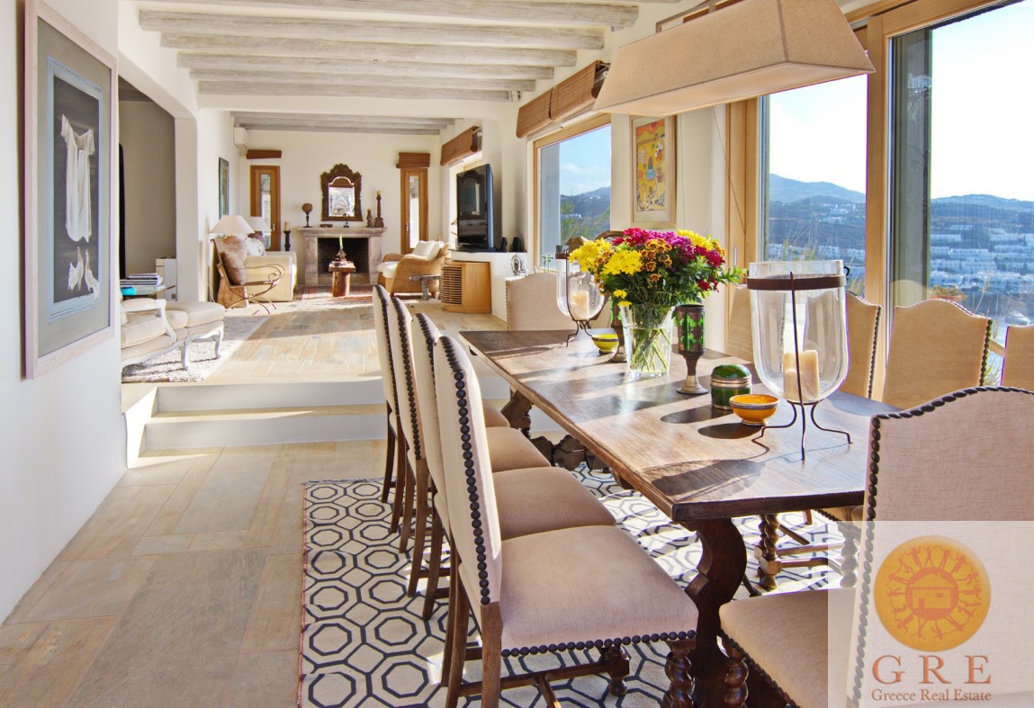 בראש הגבעה של אזור אגיוס לזרוס Agios Lazaros היוקרתי במיקונוס, משקיפה על המים היפים של הים האגא הוילה.