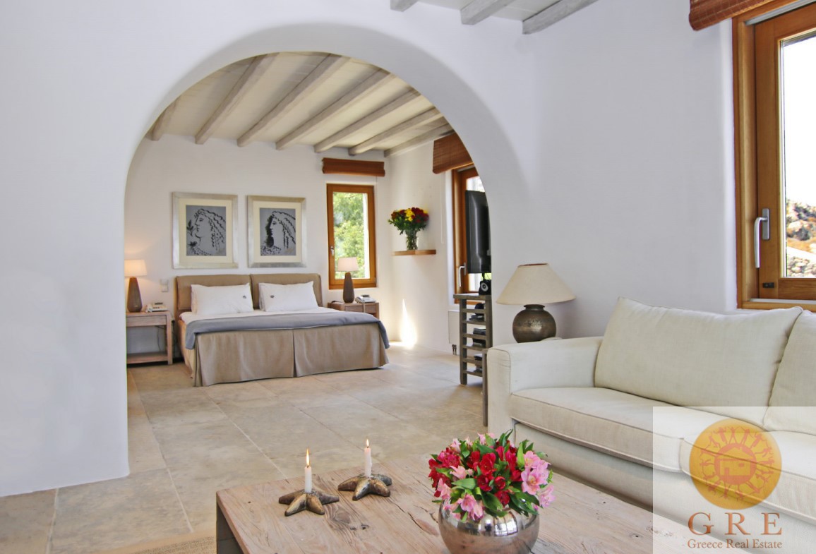 במרחק דקות ספורות בלבד מחוף פסארו Psarou Beach הנודע וממסעדת Nammos המפורסמת על שפת הים.