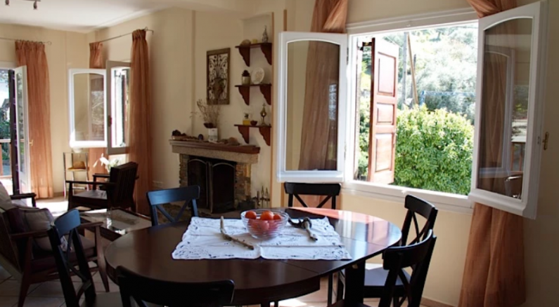 יש מטבח מאובזר, סלון, אח ומרפסת גדולה המציעה נוף לים ולחוף. בקומה השנייה נמצאים שלושת חדרי השינה עם שני חדרי רחצה.